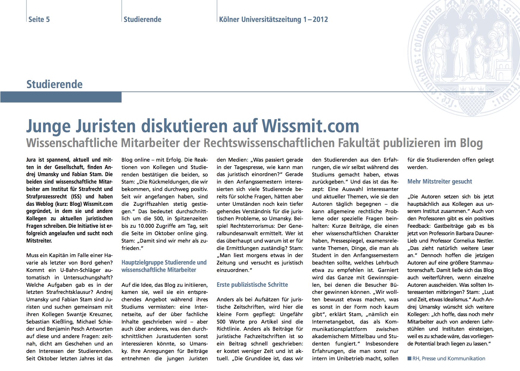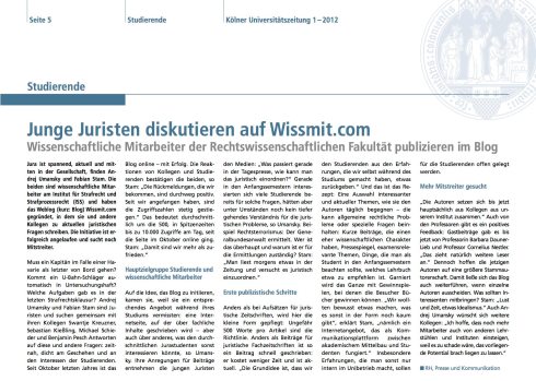 Die Universitätszeitung schreibt in ihrer aktuellen Ausgabe (1/2012) zu Wissmit.com: